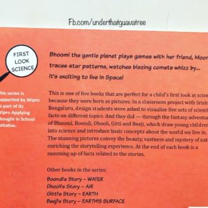 Bhoomi’s story space is a good read for kids starting with the concepts of solar system and universe. It’s a part of five book series by Tulika Publishers presenting the different elements of nature in a fun story format.