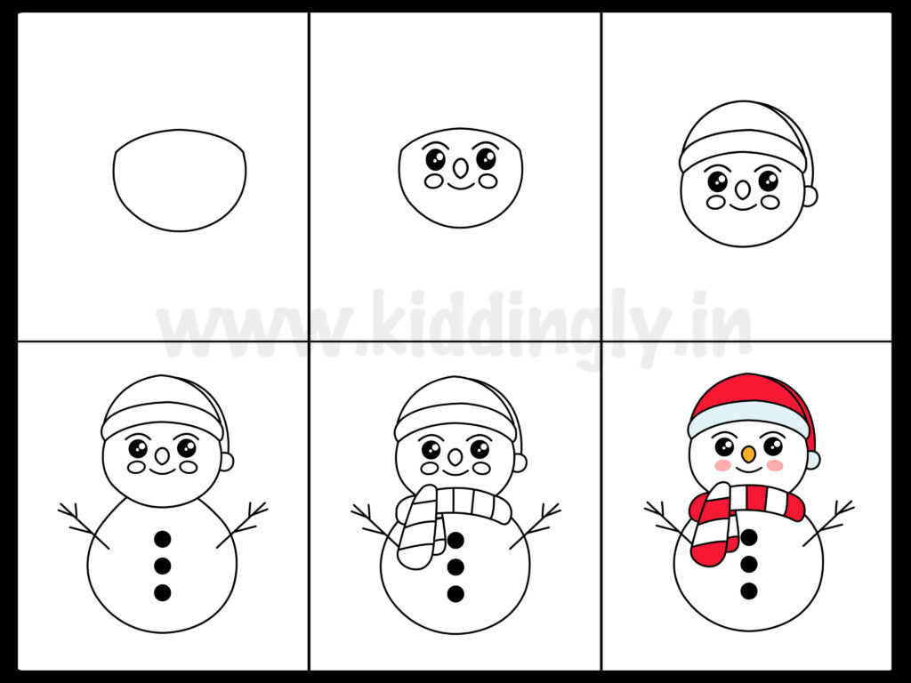 Me and junior loved doing it together. There is something fun about Snowman, you can create a variety of it and still not get bored. Do give this one a try and color it the way you want. Here goes the step by step tutorial for you on how to draw a snowman doodle.