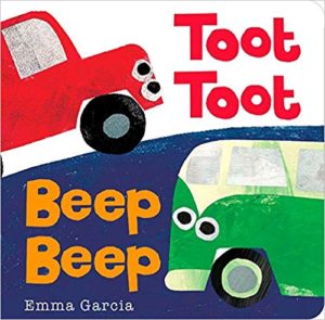 Toot Toot Beep Beep is a fun book that starts at a traffic point. Colorful Cars zoom across the pages and the book illustrates the different sounds they make encouraging children to participate.